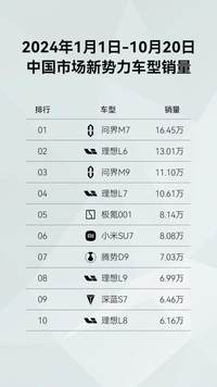 程门 · 2024-10-28 16:00 - 问界新M7智驾升级,2024年销量16.45万辆,持续霸榜新势力销量第一