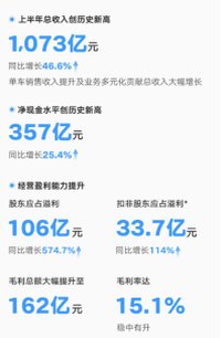 今日,吉利汽车控股有限公司(简称“吉利汽车”)发布2024年上半年财报。2024年上半年,吉利汽车实现营业收入1,073亿元,同比增长46.6%%;经营盈利能力提升,股东应占溢利同比大幅增加,上半年股东应占溢利106亿元,同比大增574.7%%;扣非股东应占溢利33.7亿元,同比增长114%%;净现金水平同比增长25.4%%至357亿元。