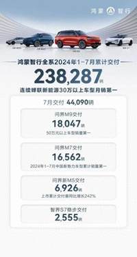 鸿途 · 2024-08-02 10:41 - 累计交付超20万辆,问界新M7再次展现领跑新势力的实力