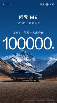 - 问界M9累计大定破10万!刷新中国市场豪华品牌车型销量纪录6月26日,鸿蒙智行官宣旗下豪华科技旗舰SUV问界M9,上市6个月累计大定突破10万大关。这一成绩不仅刷新了中国市场豪华品牌车型销量纪录,更稳固了问界M9在中国市场50万以上不分车身形式、不分能源形式的豪华车销量冠军宝座。而鸿蒙智行的首款行政级豪华轿车——享界S9也即将于8月正式上市,届时,问界M9和享界S9将组成“双9旗舰”,进一步助推鸿蒙智行发力高端市场,为中国汽车品牌持续向上注入强劲动力。 鸿途 · 2024-06-26 13:31