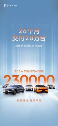 鸿途 · 2024-03-19 16:00 - 极氪突破20万台交付大关,零自燃安全纪录刷新行业标准