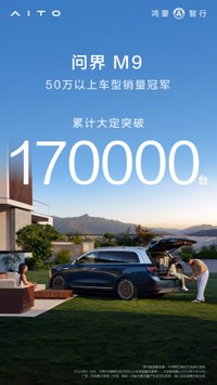 11月11日,据鸿蒙智行官方消息,问界M9上市10个多月累计大定突破17万台,已连续7个月稳居中国市场50万以上豪华车销量TP 1。今年以来,问界系列产品矩阵持续扩容、新品迭代升级,问界新M5、问界新M7 Ultra、问界新M7 Pro、问界M9大五座相继上市,为用户带来持续领先的智慧出行体验,赢得了众多用户的认可。